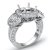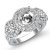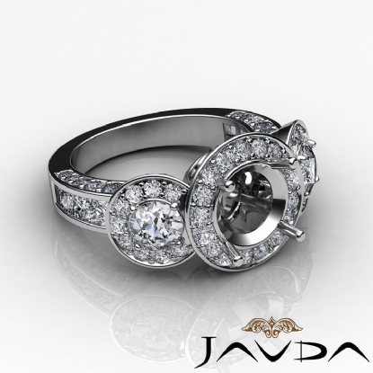 Triple the diamonds for limitless shine! This 14K white gold & 1.3ct. semi mount engagement ring features round halo diamonds that frame the three round stones, along with pave set diamonds on the shank.