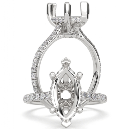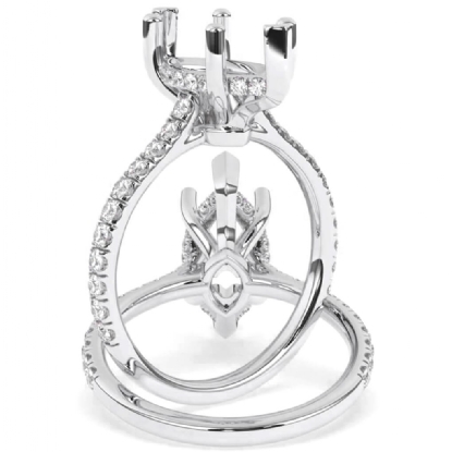 Masterpiece, this hidden halo french u cut pave marquise semi mount diamond engagement ring is made in high quality 14k white gold. Features a glittering 0.51-carat round diamonds in a french U cut pave setting on a hidden halo and a beautiful cathedral shank. Also available in 14k & 18k white gold, yellow gold, rose gold, and platinum 950. If you don't find your desired jewelry, please don't hesitate to contact our designer to make your custom jewelry design