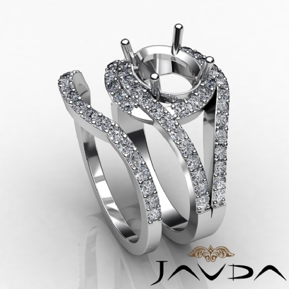 Elegant and unique, this 1.2ct. diamond engagement ring in 14k white gold is designed with two floating spirals of pave set diamonds that highlight this bridal set. Pave set diamonds on the matching band look gorgeous.