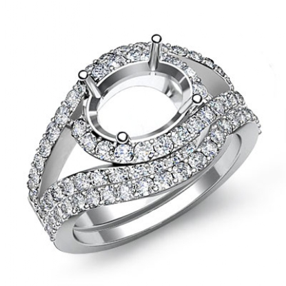1.2Ct Round Diamond Engagement Oval Ring Bridal Set 14K White Gold Pave Setting