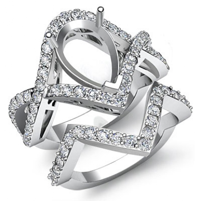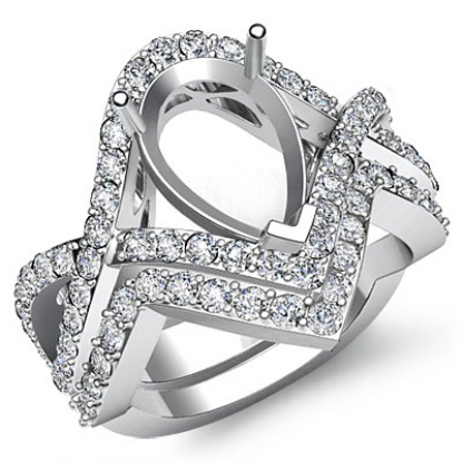 1.4Ct Round Diamond Engagement Ring Pear Bridal Set 14K White Gold Pave Setting
