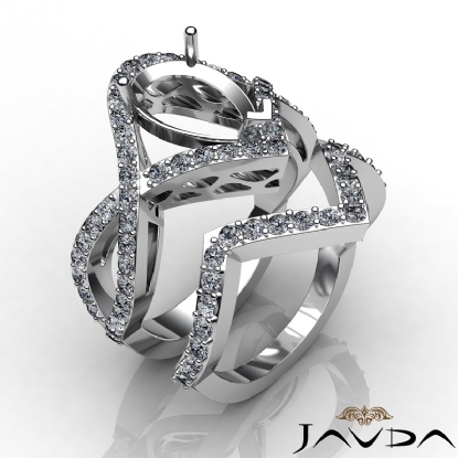 Capture your lasting love with this 14K white gold semi mount bridal set showcasing a drape of pave set diamonds in halo and along the twisted shank. This 1.40ct. engagement ring comes with a matching band.