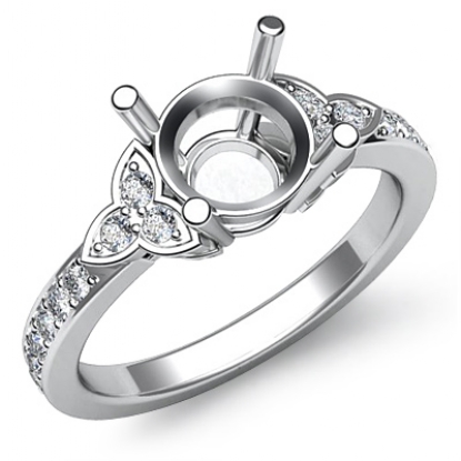 Gorgeously designed, this 14K white gold, 0.16ct. ring is worth it! A glamorous semi mount round center diamond in prong setting, is clustered by round diamonds in a leaf motif on both sides. Pave set round diamonds on the shank look incredible!
