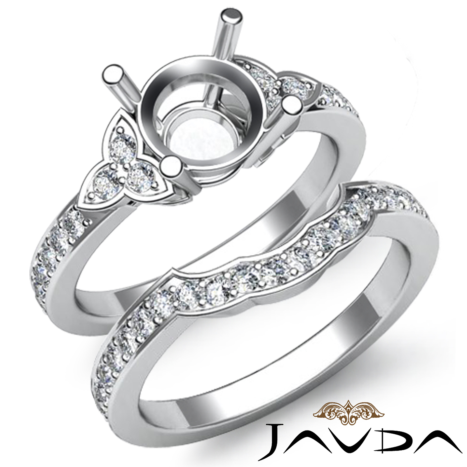 0.60Ct Diamond Engagement Semi Mount Ring Bridal Set 14K White Gold Wedding Band