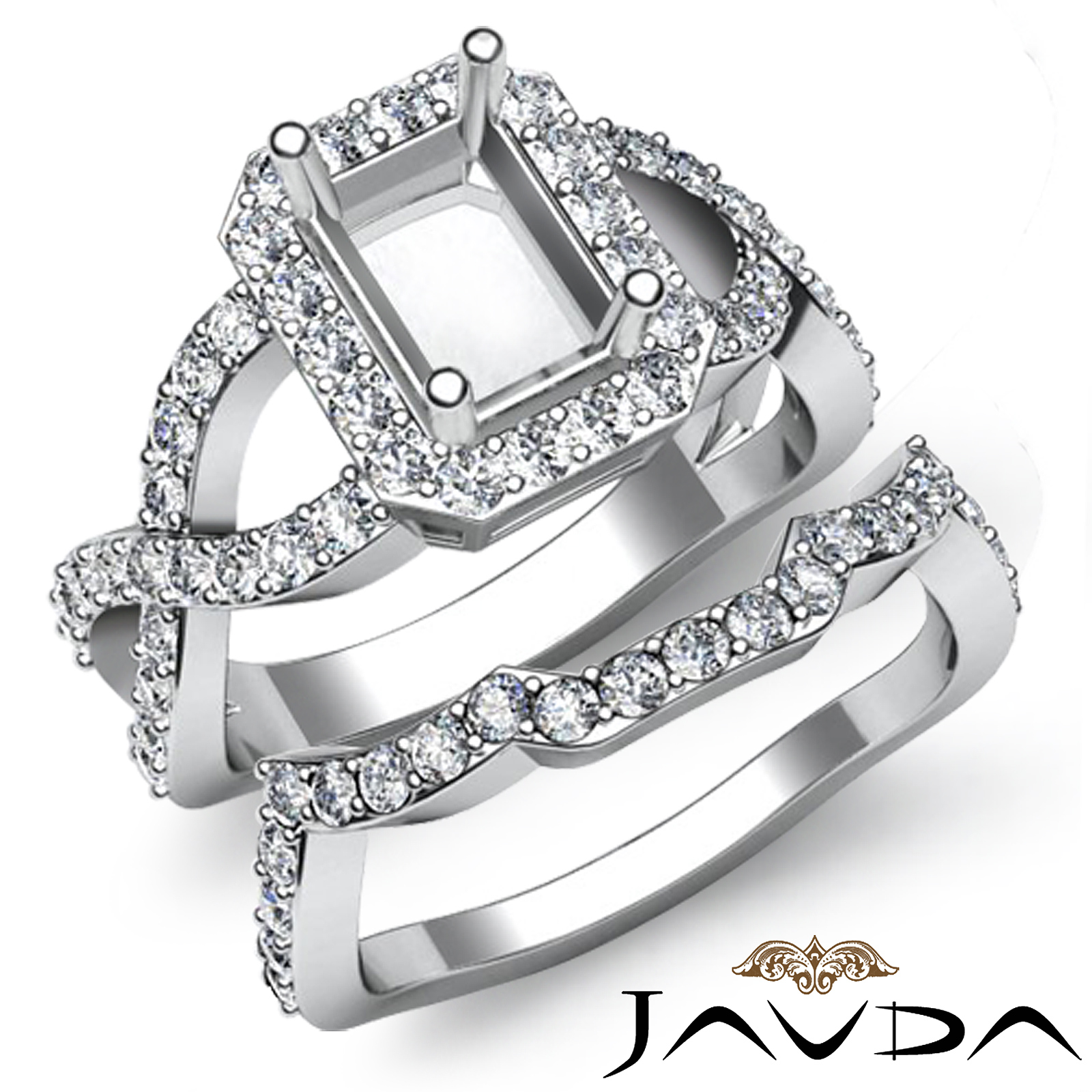 14K White Gold Emerald Diamond Engagement Ring Bridal Sets Pave Setting 1.2ct.