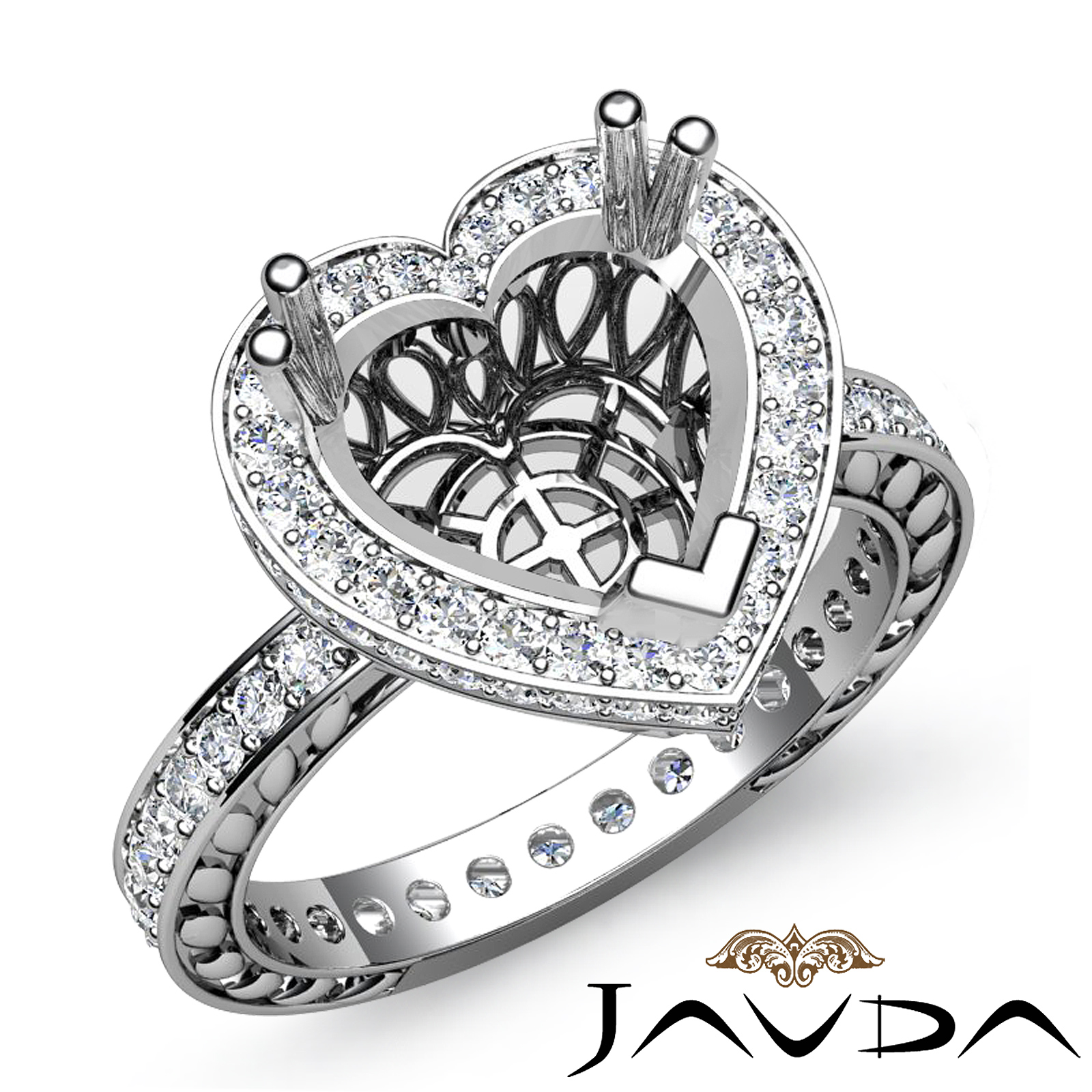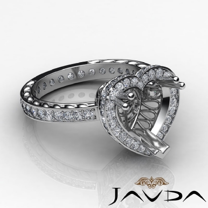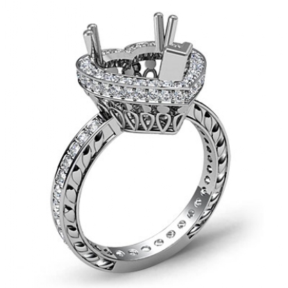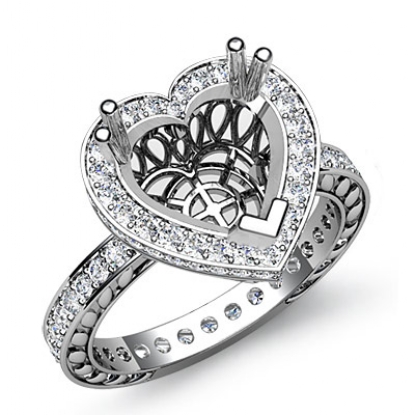 Heart Cut Halo Pave Diamond Engagement Semi Mount Ring in 14K White Gold 1Ct