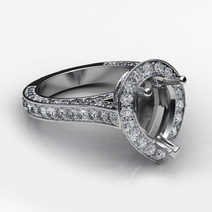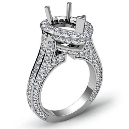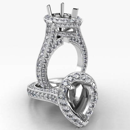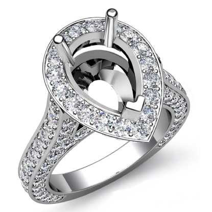 Pear Semi Mount Halo Pave Setting Diamond Engagement Ring 14k White Gold 2.1Ct
