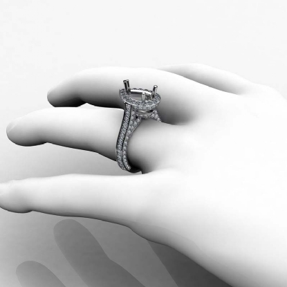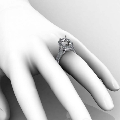 2.1 Carat Round Halo Pave Setting Vintage Diamond Engagement Ring made in 14karat White Gold and can be set in Round Semi Mount.