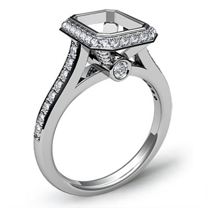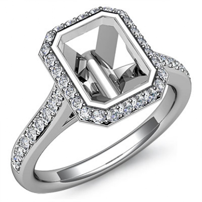 Diamond Engagement Ring 14k White Gold Emerald Semi Mount Halo Setting 0.80Ct