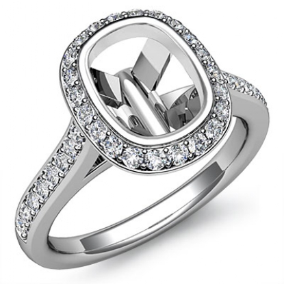 Diamond Engagement Ring 14k White Gold Cushion Semi Mount Halo Setting 0.80Ct