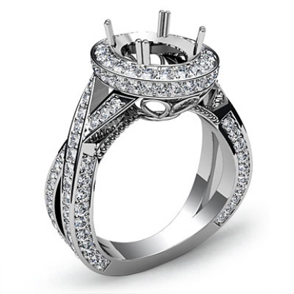 Diamond Engagement Halo Pave Setting Ring Oval Semi Mount 14K White Gold 1.52Ct