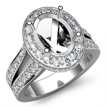 Celebrate lavishly with this 14K white gold diamond engagement ring with an oval semi mount. It features 1.3ct. round diamonds in pave setting on halo & along the beautiful split shank.