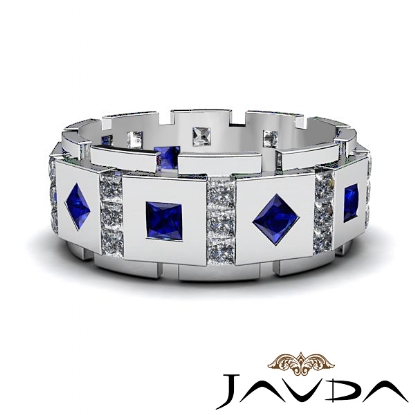 3 Ct Princess Diamond & Sapphire Men's Eternity Wedding Band 14k White Gold