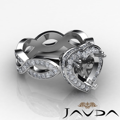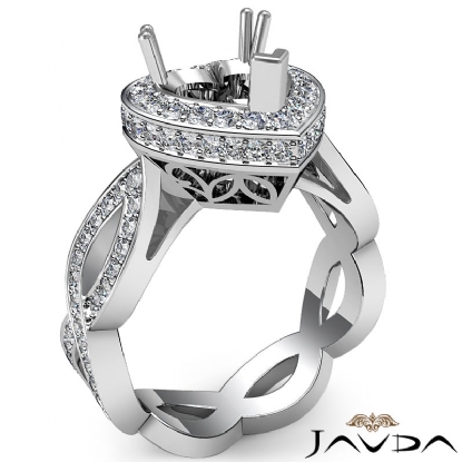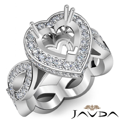 Diamond Engagement Heart Semi Mount Halo Pave Setting Ring 14K White Gold 1.3Ct