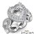 Striking yet forever timeless, this 14K white gold diamond engagement ring has a heart shaped semi mount. It features 1.3ct. round diamonds in pave setting on halo & along the shank.