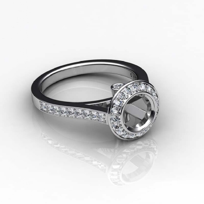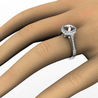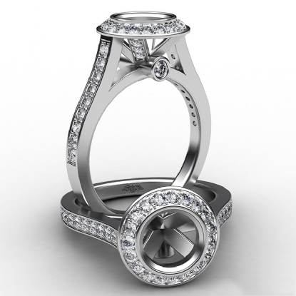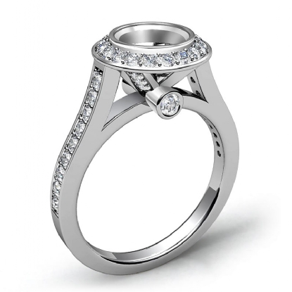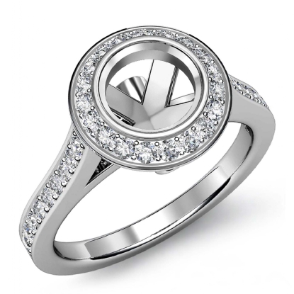 Halo Pave Setting Diamond Engagement Ring 14k White Gold Round Semi Mount 0.47Ct