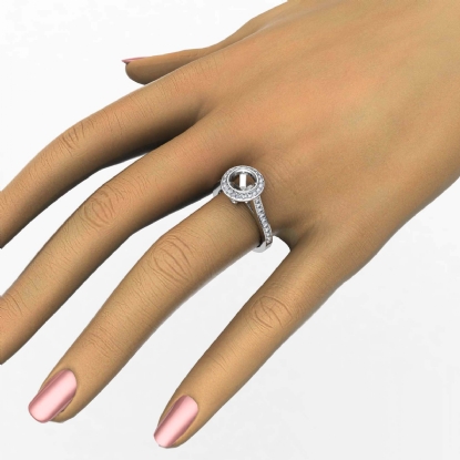 Alluring in every way, this intricate 14K white gold engagement ring features a round semi mount. It showcases 0.47ct. pave set round diamonds in halo & along the beautiful shank.
