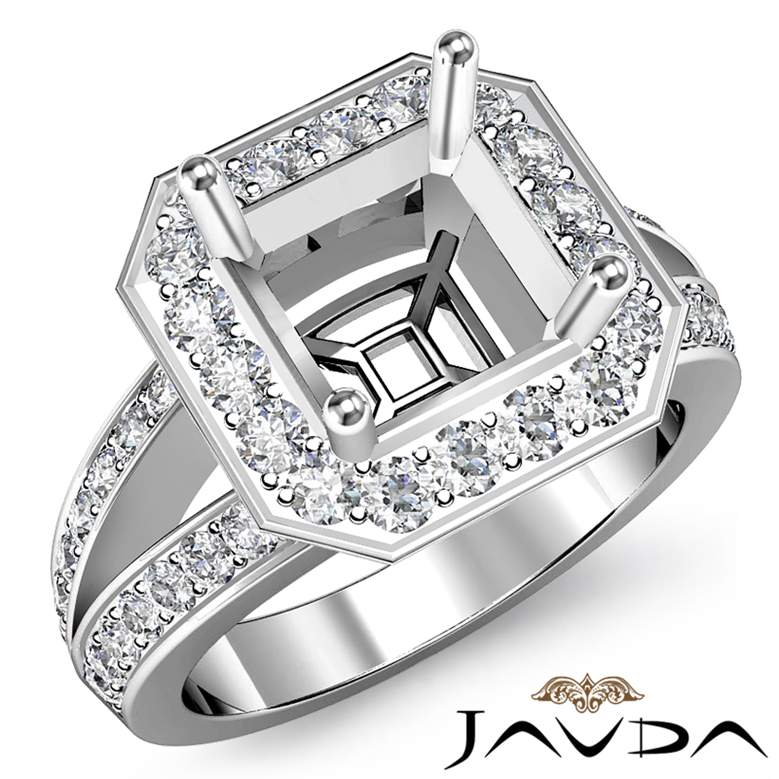Diamond Engagement Asscher Semi Mount Ring 14K W Gold Halo Pave Setting 0.63Ct