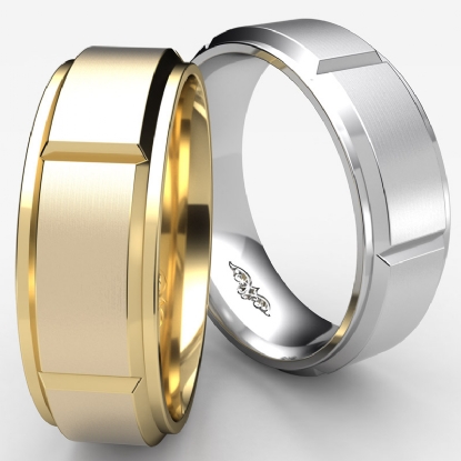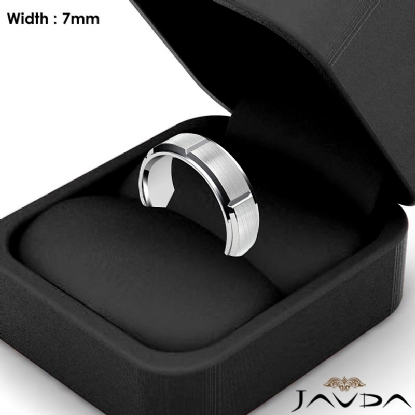 9.4g Men's 14k White Gold Solid Beveled Edge Wedding Band. Dome style band. Ring Size is 9. Width is 7mm. Available in high polish and matt finish.
