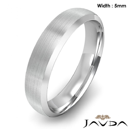 5.8g Men's 14k White Gold Solid Beveled Edge Wedding Band. Dome style band. Ring Size is 9. Width is 5mm. Available in high polish and matt finish.