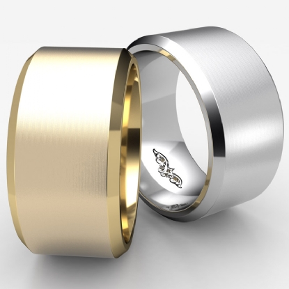 18.1g Men's 14k White Gold Solid Beveled Edge Wedding Band. Flat style band. Ring Size is 9. Width is 11mm. Available in high polish and matt finish.