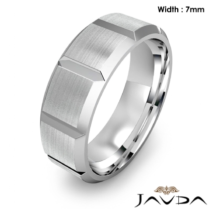 Beveled Edge Men's Dome Wedding Band 14k White Gold Solid Ring 7mm 9.9g 9 size