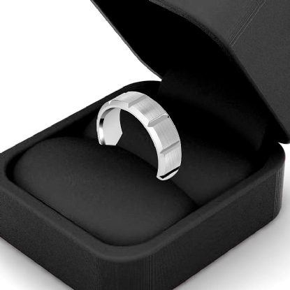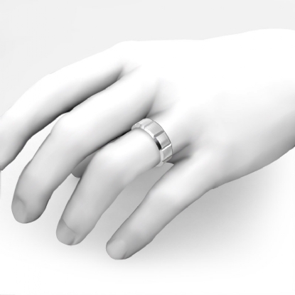 9.9g Men's 14k White Gold Solid Beveled Edge Wedding Band. Dome style Traditional band. Ring Size is 9. Width is 7mm. Available in high polish and matt finish.