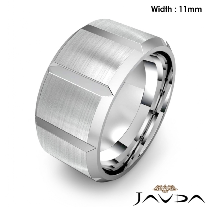 Beveled Edge Men's Dome Wedding Band 14k White Gold Solid Ring 11mm 17.6g 9 size