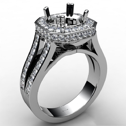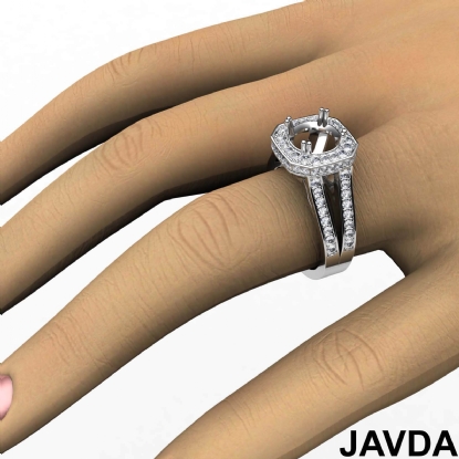 Pre-Set Diamond Engagement Ring 14k W Gold Cushion Semi Mount Split Shank 1.34Ct