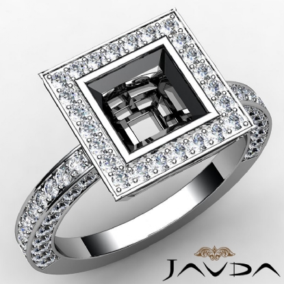 Princess Semi Mount Diamond Engagement Bezel Halo Set Ring 14k White Gold 1.48Ct
