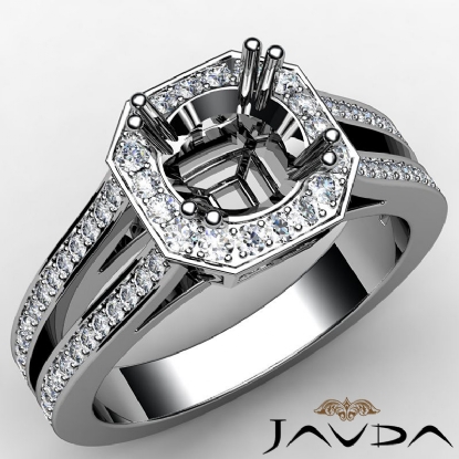 Halo Setting Round Cut Diamond Engagement Ring 14K White Gold Semi Mount 0.96CT
