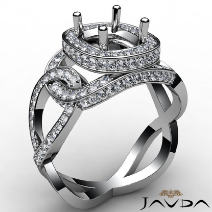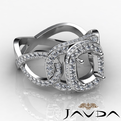 Cushion Semi Mount Halo Pave Setting Diamond Engagement Ring 14K W Gold 1.28Ct