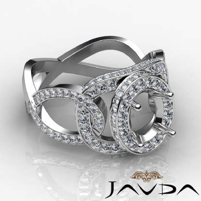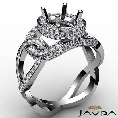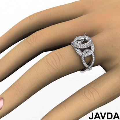 Halo Pave Setting Oval Semi Mount Diamond Engagement Ring 14K White Gold 1.33Ct