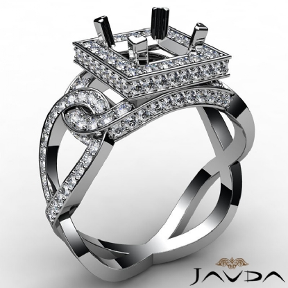 Diamond Engagement Princess Semi Mount Halo Pave Set Ring 14K White Gold 1.25Ct