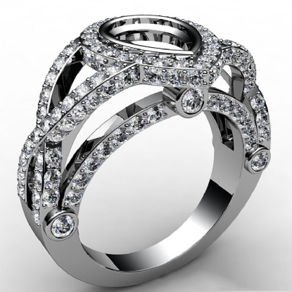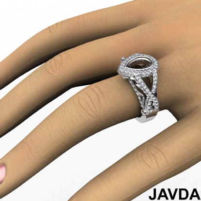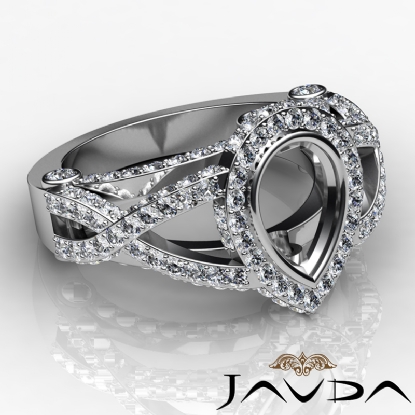 Pear Semi Mount Diamond Engagement Ring Halo Pave Setting 14K White Gold 1.36ct