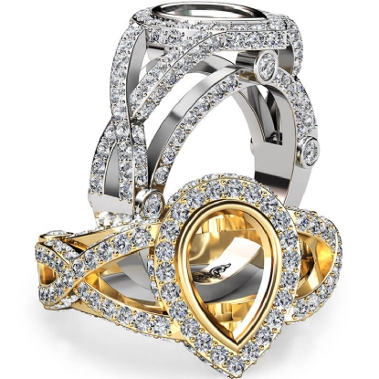 Made with love this 14K white gold diamond engagement ring is ready to set high standards. It features 1.36ct. of pave set round diamonds on the pear semi mount halo & along the criss-cross shank.