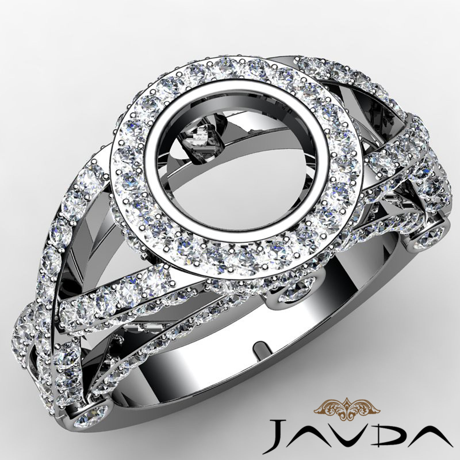Diamond Engagement Ring Halo Setting Round Cut Semi Mount 14K White Gold 1.47ct
