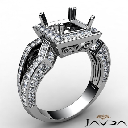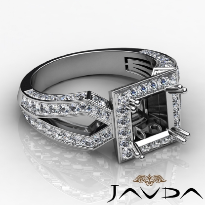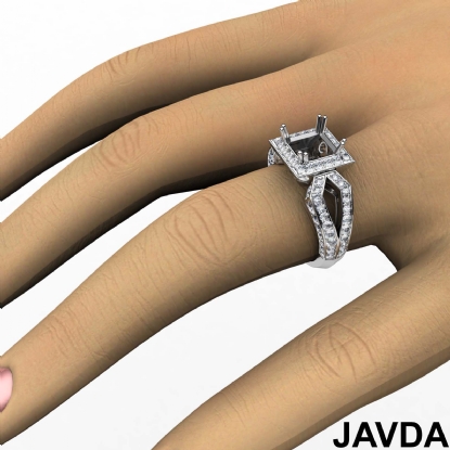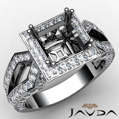 Halo Setting Diamond Engagement Ring Princess Semi Mount 14k White Gold 1.38Ct