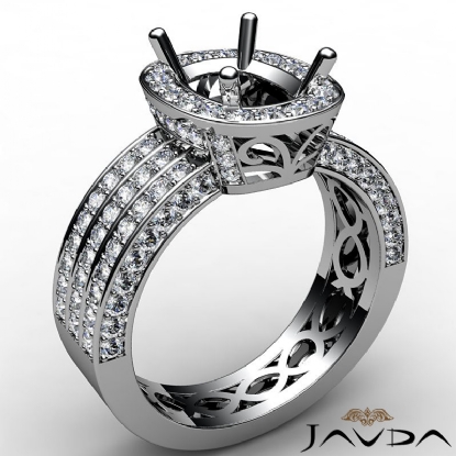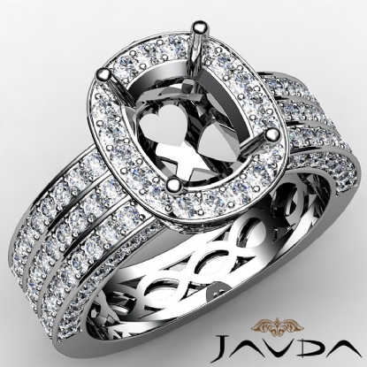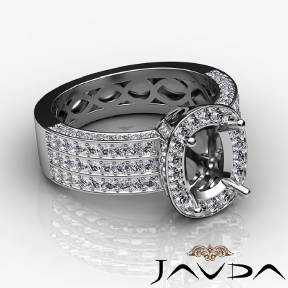 3 Row Diamond Engagement Cushion Semi Mount Ring 14k W Gold Halo Setting 1.42Ct