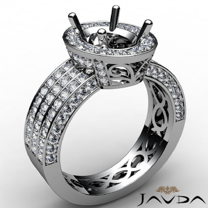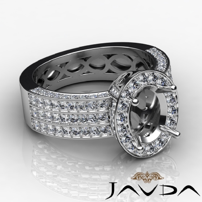 Three Row Diamond Engagement Oval Cut Semi Mount Ring 14k White Gold Halo 1.45Ct