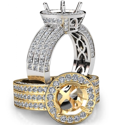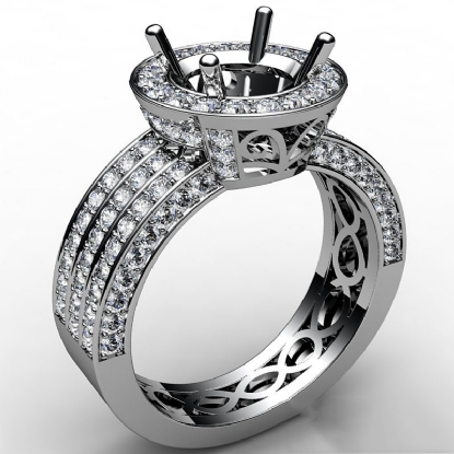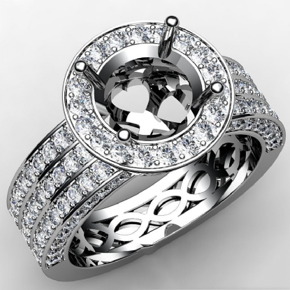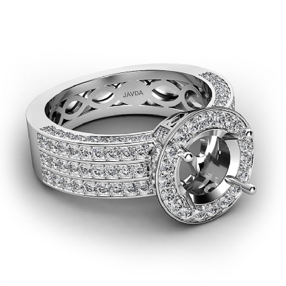Halo Setting 3 Row Diamond Engagement Round SemiMount Ring 14k White Gold 1.35Ct
