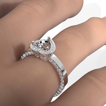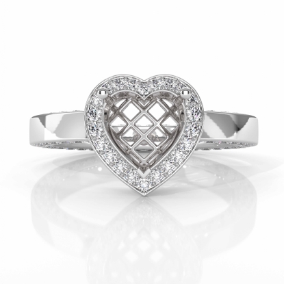 Heart Cut Diamond Engagement Pave Ring Setting 14k White Gold Semi Mount 1.35 Ct