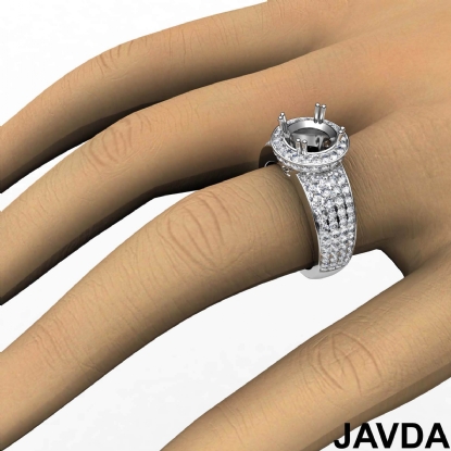 Diamond Engagement Ring Halo Pave Setting Round Semi Mount 14k White Gold 2Ct