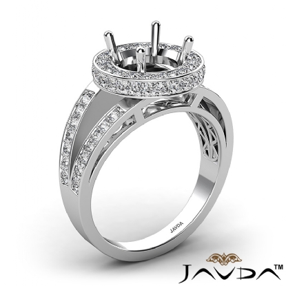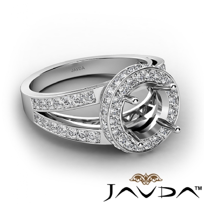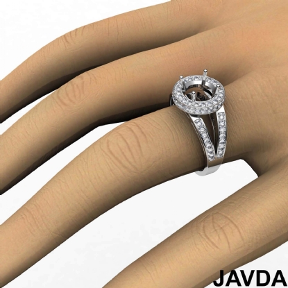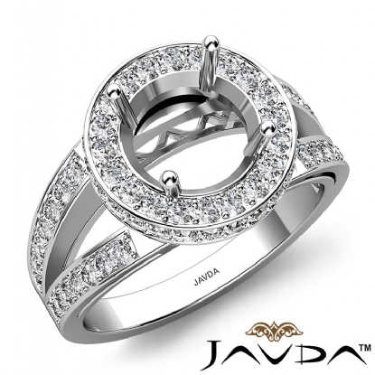 Round Semi Mount Diamond Engagement Halo Pave Setting Ring 14K White Gold 0.76Ct