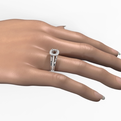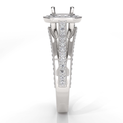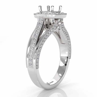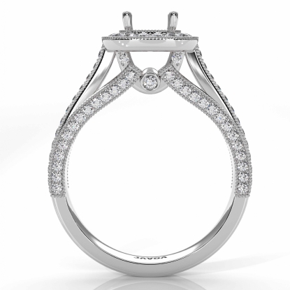 Halo Pre-Set Diamond Engagement Round SemiMount Millgrain Ring 14K W Gold 0.90Ct