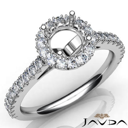 French Cut Pave Set Diamond Engagement Round Semi Mount Ring 14K W Gold 1Ct