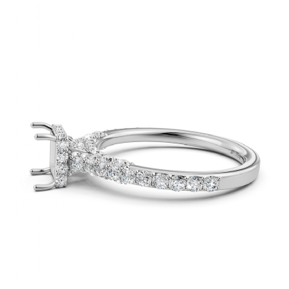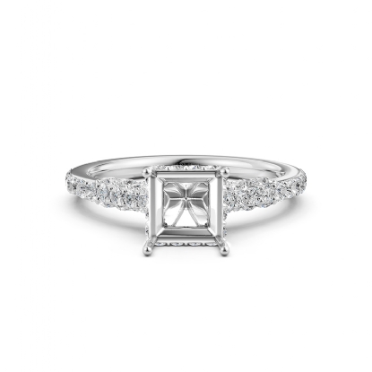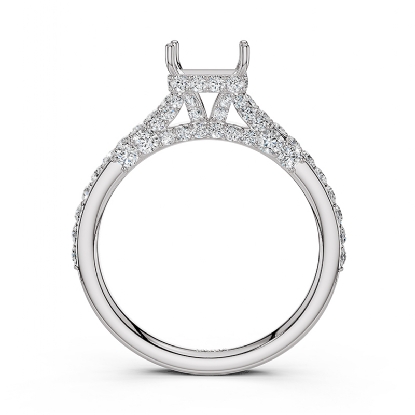 Diamond Engagement Pave Setting 14K White Gold Princess Semi Mount Ring 0.65Ct