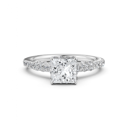 0.65 Carat Round Diamond Women Engagement & Anniversary Solid Ring made in 14 Karat White Gold. Diamonds are set in Pave Setting for Princess Cut in a Semi Mount.
