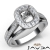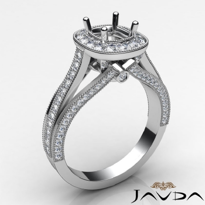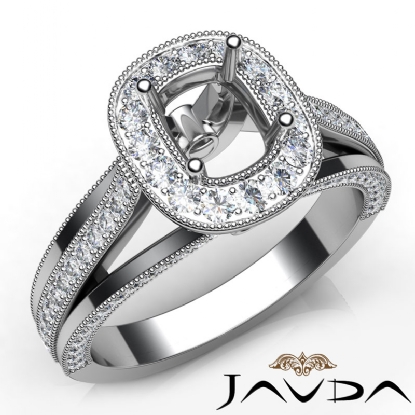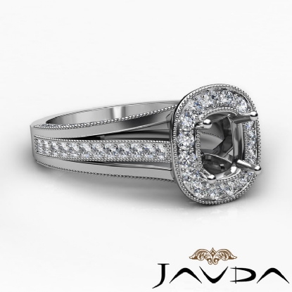 Halo Pave Diamond Engagement Cushion Semi Mount Millgrain Ring 14K W Gold 0.90Ct