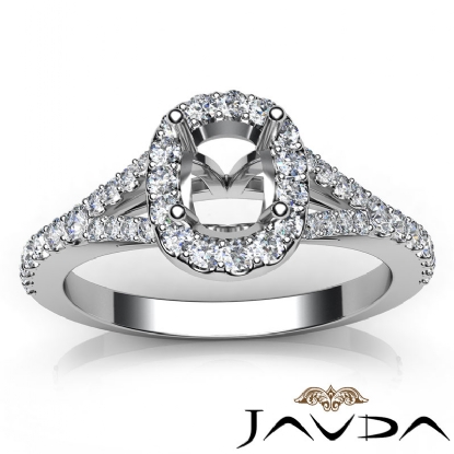 Diamond Engagement 14K W Gold Halo Pave Setting Cushion Semi Mount Ring 0.50Ct